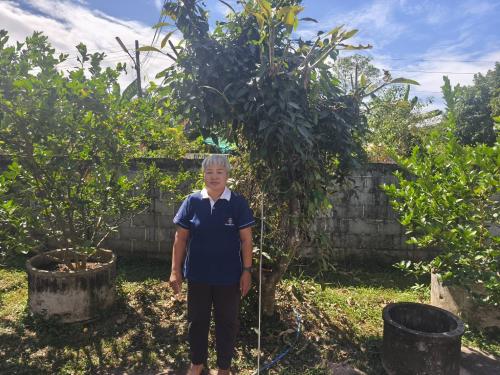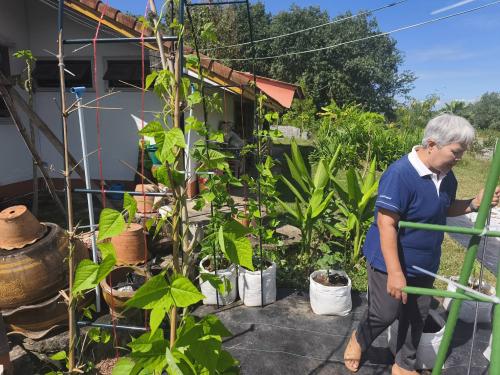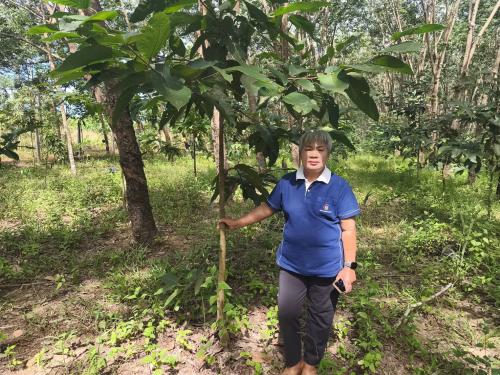 นางสุรีรัตน์ ดวงไกรวงศ์ นักวิชาการพัฒนาชุมชนชำนาญการ ลงมือสร้างความมั่นคงทางอาหาร ปลูกผักสวนครัวบริเวณบ้าน เพื่อทานอาหารที่ปลอดสาร ลดรายจ่าย และยังสามารถเพิ่มรายได้ให้ครอบครัว ปัจจุบันมีผักสวนครัวและไม้ผลไม่น้อยกว่า 30 ชนิด