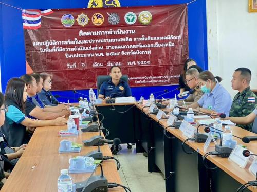 การประชุมครั้งนี้มี นายดนุเดช ใจศรี ป้องกันจังหวัดบึงกาฬ เป็นประธานการประชุม พร้อมด้วย น.ส.ศศิวรี พิริยบัณฑิตสกุล ผู้แทนสำนักงาน ป.ป.ส. ภาค 4 นายขจรศักดิ์ พรมเทศ หัวหน้าเจ้าหน้าที่ ศอ.ปส.จ.บก. นายพัฒนศักดิ์ นามวงค์ษา ผู้ช่วยป้องกันจังหวัดบึงกาฬ นายจักรกรินทร์ อุปัชฌาย์ ผู้ช่วยป้องกันจังหวัดบึงกาฬ และคณะทำงาน เข้าร่วมประชุมเพื่อติดตามผลการดำเนินงาน พร้อมให้ข้อเสนอแนะในการขับเคลื่อนมาตรการป้องกันและแก้ไขปัญหายาเสพติดในพื้นที่ชายแดน