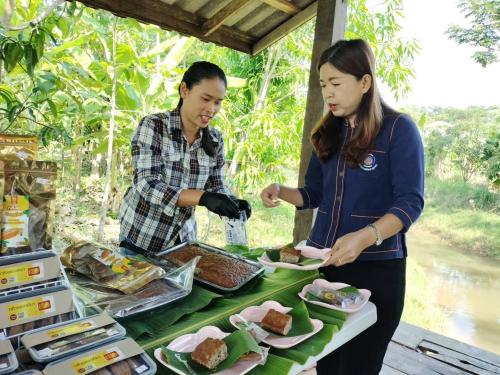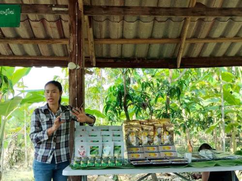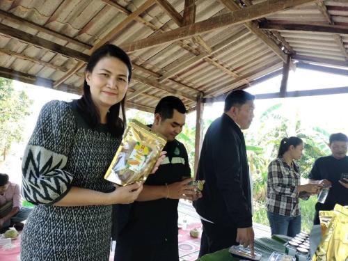 ในการนี้ นางพจนีย์ คำมุงคุณ พัฒนาการอำเภอปากคาด ร่วมให้ข้อมูลผลการดำเนินงานของกลุ่มบ้านต้นตอ ซึ่งเป็นกลุ่มด้านการแปรรูป พร้อมนำเสนอความก้าวหน้า ปัญหาอุปสรรค และแนวทางการพัฒนากลุ่มในระยะต่อไป